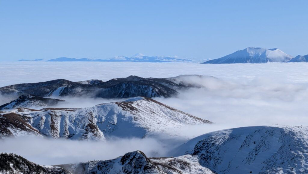雲海と草津白根山と浅間山と富士山