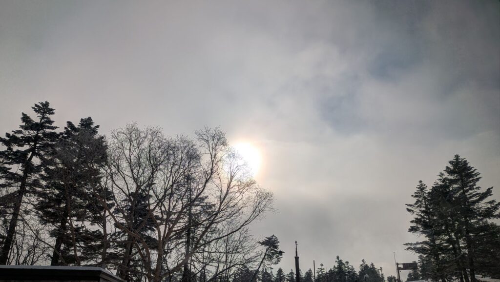おはようございます。本日の渋峠は今の所雲の切れ間から陽がさしていますが雪もちらちら降って来ていますので天気予報通り雪の1日になりそうです。気温−10℃、まだまだ極寒が時折続く渋峠ですので暖かくしてスキーをお楽しみ下さい。