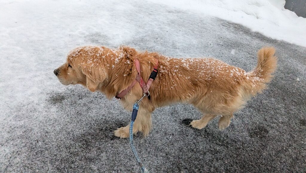 毎年この時期恒例の雪の中の散歩! まだまだ元気なマーカスでした!